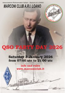 QSO-Party Marconi-Club am 03.Januar 2026 MARCONI CLUB ARI LOANO QSO PARTY DAY – Ausgabe 2026 Die genaue Ausschreibung ist hier zu finden… www.marconiclub.it